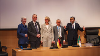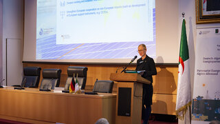 The first conference session focused on green hydrogen and highlighted the implementation of Algeria's national hydrogen strategy as well as prospects for cooperation and market development in this new sector. International experts also shared insights into the German and European hydrogen strategy and cooperation with Algeria, including the KfW Development Bank and the Fraunhofer Institute for Systems and Innovation Research.